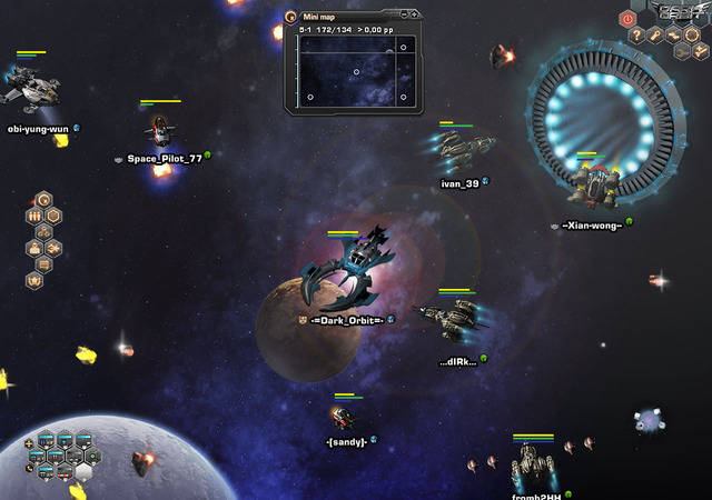 In dem Online Action Spiel "Dark Orbit" zählen wir das späte, dritte Jahrtausend. Durch den rücksichtslosen Umgang mit der Umwelt und zahlreiche Kriege, ist unsere Erde weitgehend unbewohnbar geworden. Daher haben sich die Menschen in "Dark Orbit" auf die Reise in die Tiefen des Weltalls gemacht, um neue Lebensräume zu erschließen. Dabei konnten viele ressourcenreiche Planeten entdeckt, erschlossen und besiedelt werden. Doch die Dunkelheit lässt sich aus den Herzen der Menschen nicht vertreiben: Wie auch auf der Erde dreht sich weiterhin alles um schnelles Geld, berauschende Macht und wertvolle Ressourcen. Es sind vor allem drei mächtige Firmen, die alles an sich gerissen haben und in starker Konkurrenz zueinander stehen. Sie betrachten einander mit großen Argwohn und Missgunst! Schließlich trachten sie alle nach dem gleichen Ziel: Die absolute Vorherrschaft im Wettlauf um Ressourcen und interstellarer Macht! Hier kommst du ins Spiel: Als Kampfpilot eines kleinen, schlagkräftigen Raumschiffs durchstreifst du in dem Onlinespiel "Dark Orbit" die Galaxien, um deine Fima zu stärken! Dein Raumschiff wirst du dabei immer weiterentwickeln müssen, um deinen Feinden trotzen zu können. So wird aus deinem kleinen Mittelstreckenschiff ein mächtiger interstellarer Kampfkreuzer mit ungeheuerlicher Kampfkraft! Für deine Firma erledigst du spannende Aufträge: Hier sind beim Spielen deine ganze List und Siegeswille gefragt! Verbünde dich mit anderen Spielern aus der riesigen Online Community und schmiede eine kraftvolle Verbindungen. Vielleicht habt ihr zusammen genügend Macht, um das gesamte Weltall zu beherrschen und alle anderen Verbindungen zu zerschmettern!? Dark Orbit wird dich beim Spielen in seinen Bann ziehen! Regelmäßige Schlachten und zahlreiche Events sorgen für hohe Spannung und einen langanhaltenden Spielspaß. Tauche also tief in die Welt von "Dark Orbit" ein und verschaffe dir Respekt im dunklen Weltraum! Nimm Teil an dem wohl spannendsten und spektakulärsten Space Shooter weit und breit!
